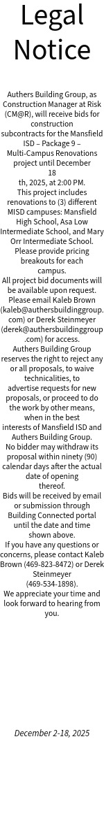 Mansfield, Texas, is a booming city, nestled between Fort Worth and Dallas, but with a personality all its own. The city’s 76,247 citizens enjoy an award-winning school district, vibrant economy, historic downtown, prize-winning park system and community focus spread across 37 square miles. The Mansfield Record is dedicated to reporting city and school news, community happenings, police and fire news, business, food and restaurants, parks and recreation, library, historical archives and special events. The city’s only online newspaper launched in September 2020 and will offer introductory advertising rates for the first three months at three different rates.