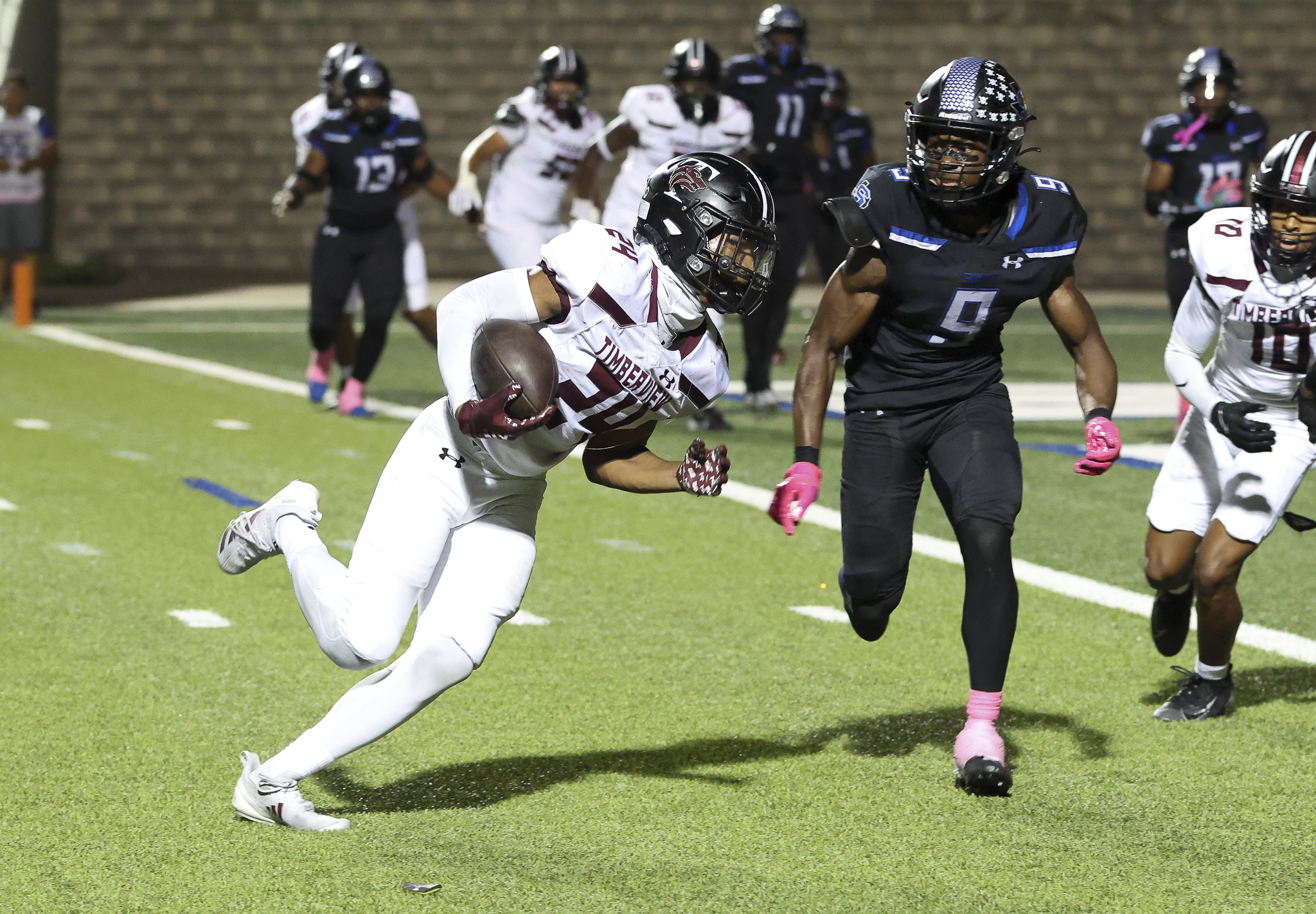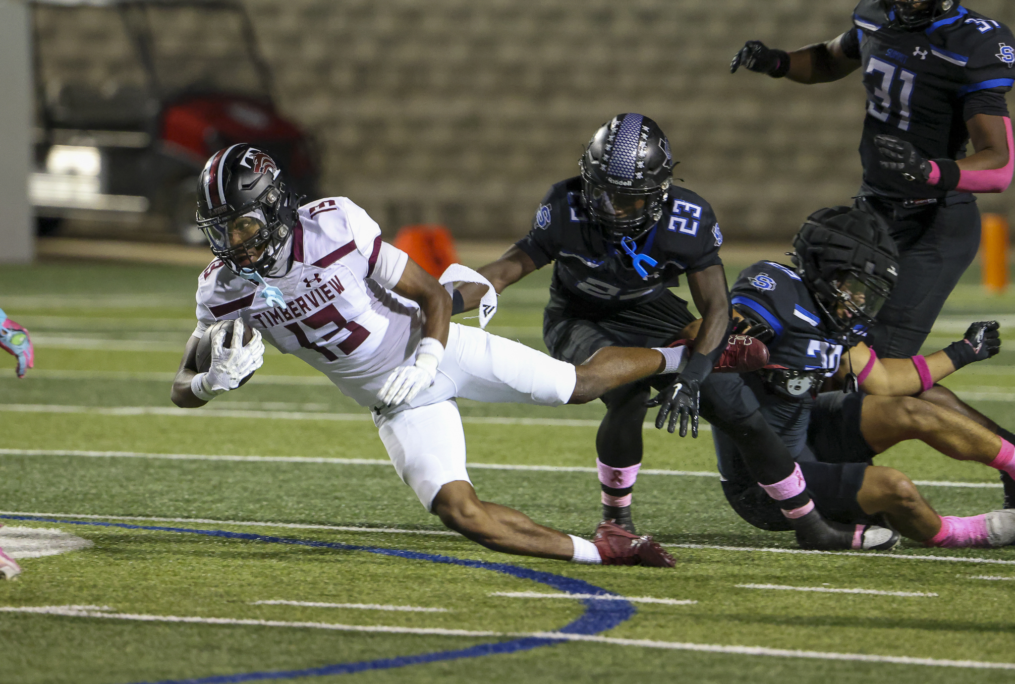 The Jaguars (5-1, 4-0 District 3-5A II) and Wolves (4-3, 3-1) combined for three touchdowns in the game’s first 3 ½ minutes, with Timberview scoring on the opening drive in only four plays. The Wolves’ Jarvis Smith returned the opening kickoff 45 yards to Summit territory. Cedric Portley’s 1-yard run gave Timberview a quick 7-0 lead.