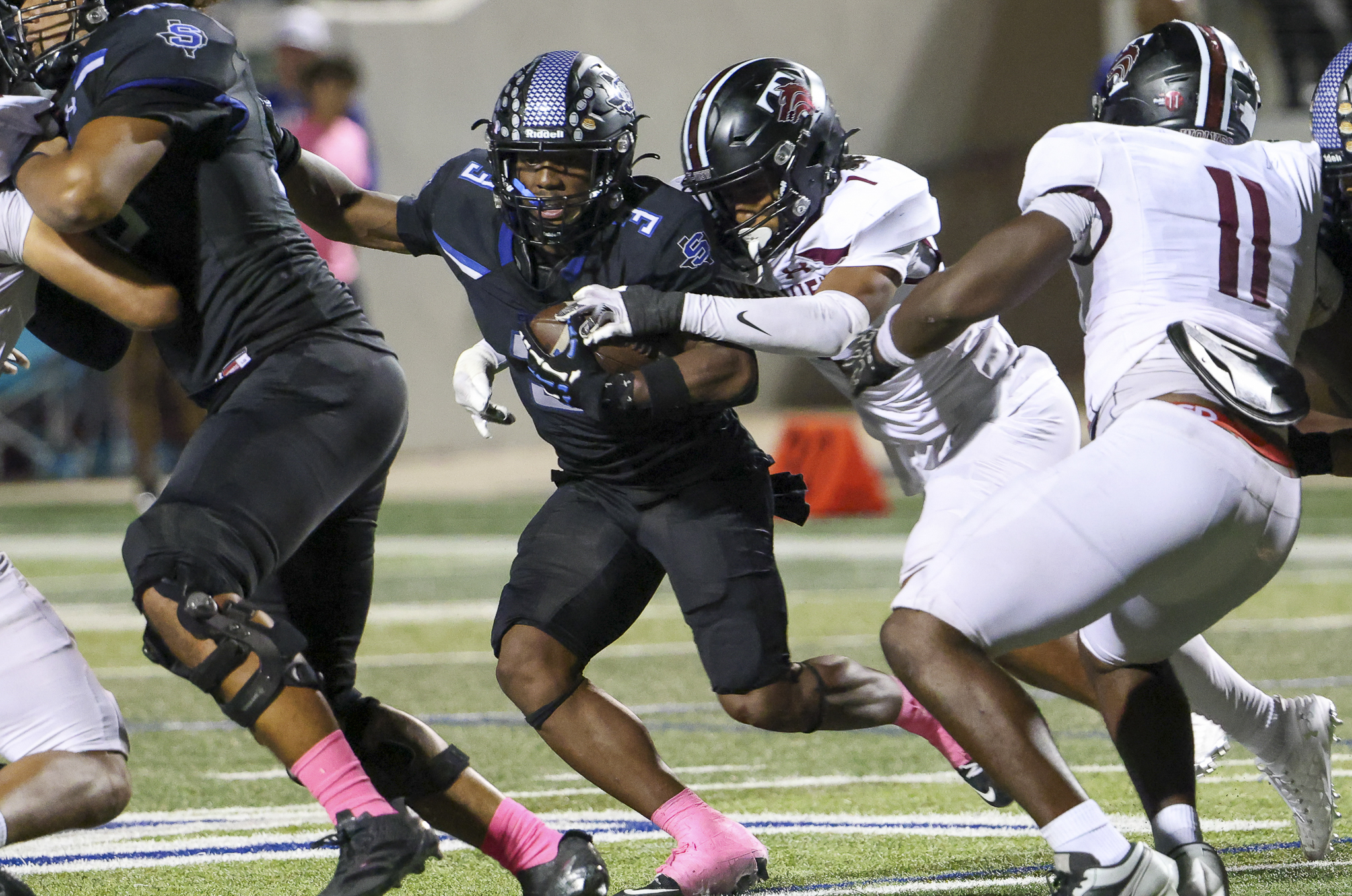 Summit took the opening kickoff of the second half and needed only five plays to score, with Omogbalaha sprinting 41 yards to give Summit a lead they wouldn’t relinquish. The extra-point attempt was blocked, and Timberview’s Geraci Martin returned it 94 yards for two points, making Summit’s lead 20-16 with 2 ½ minutes gone in the second half.