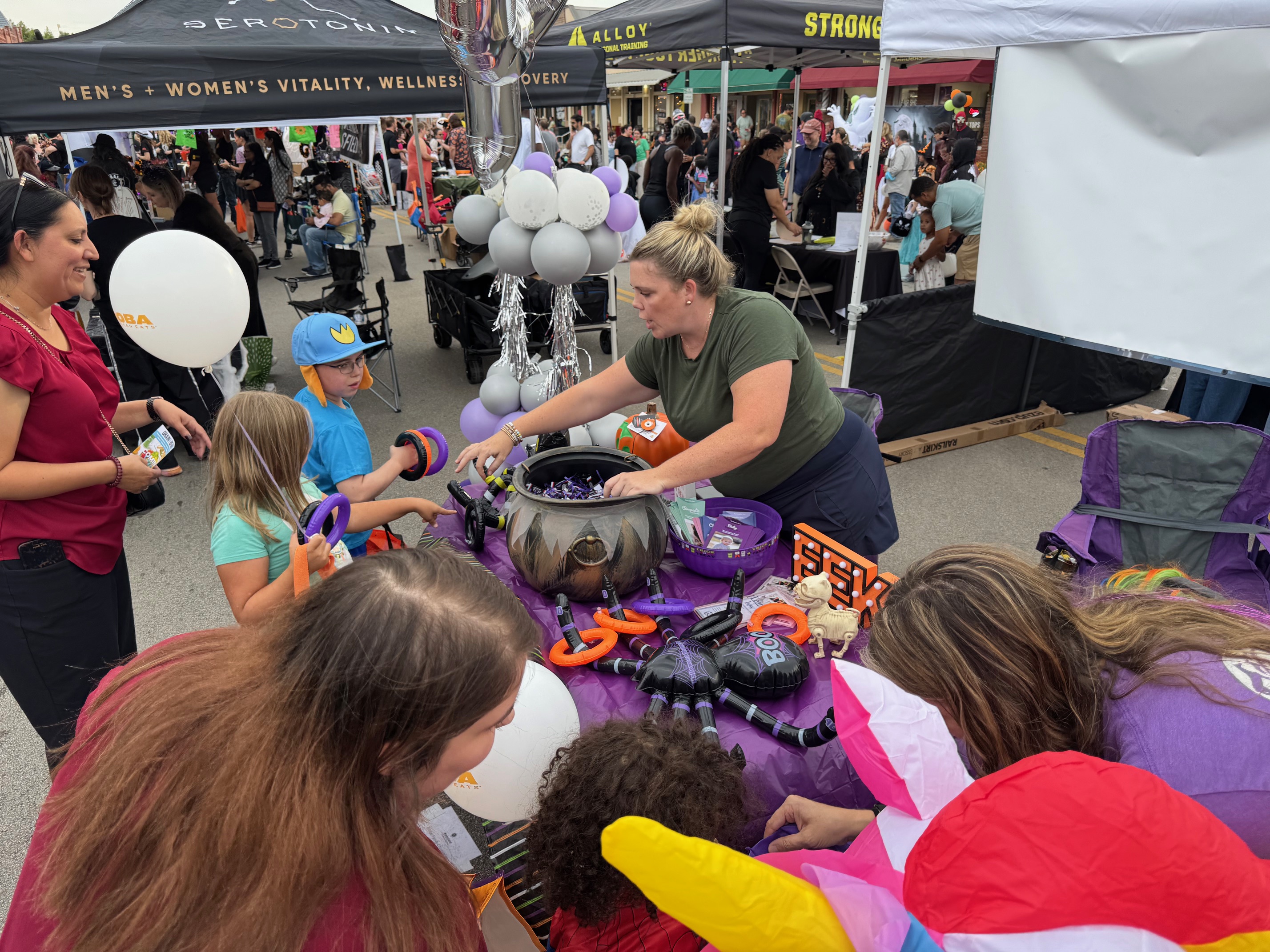 “This is good for Mansfield, good for all these businesses,” said Joe Jenkins, board chair and founder of the Mansfield Business Alliance, which sponsored the free event in conjunction with the city. “This is the second year that we have shut down the street. We had 6,000 people last year. We have 40 Business Alliance members out here handing out candy.