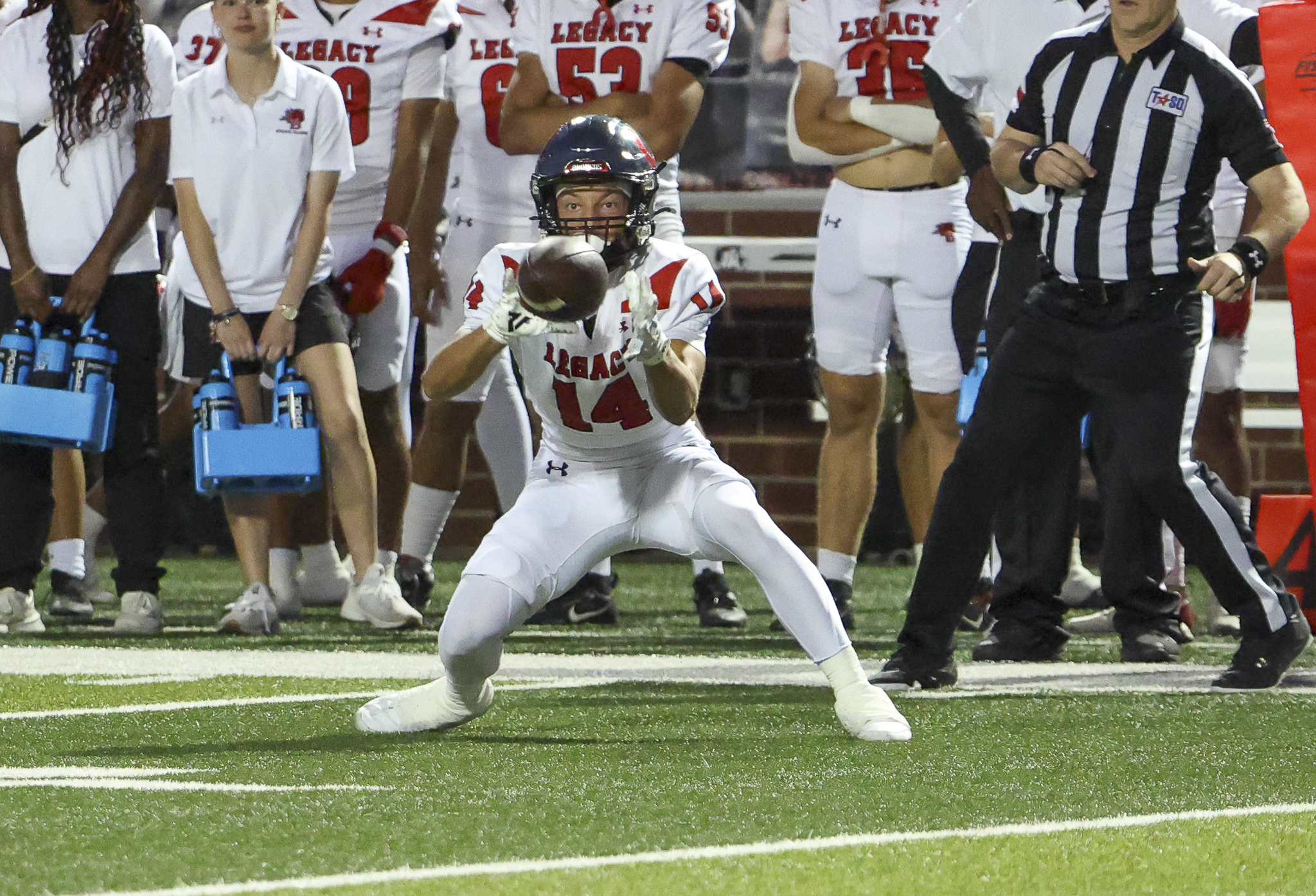 Legacy’s first possession lasted 14 plays, leading to a 31-yard field goal by Jeremiah Kieffer. Workhouse running back J-Uan Harrison Jr. carried six times for 29 yards on the drive, and caught two passes from quarterback Jake Jenkins for 11 more yards.