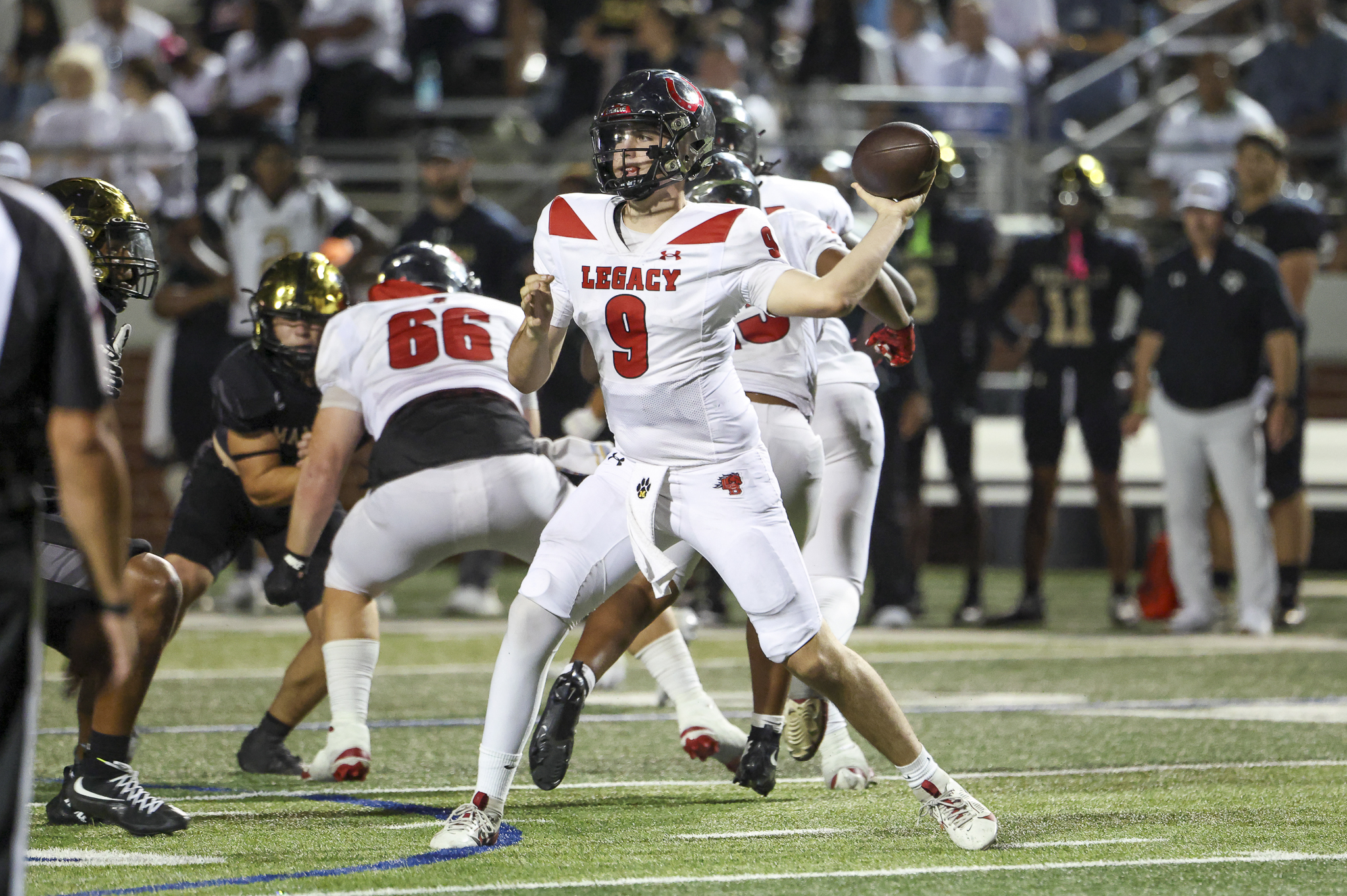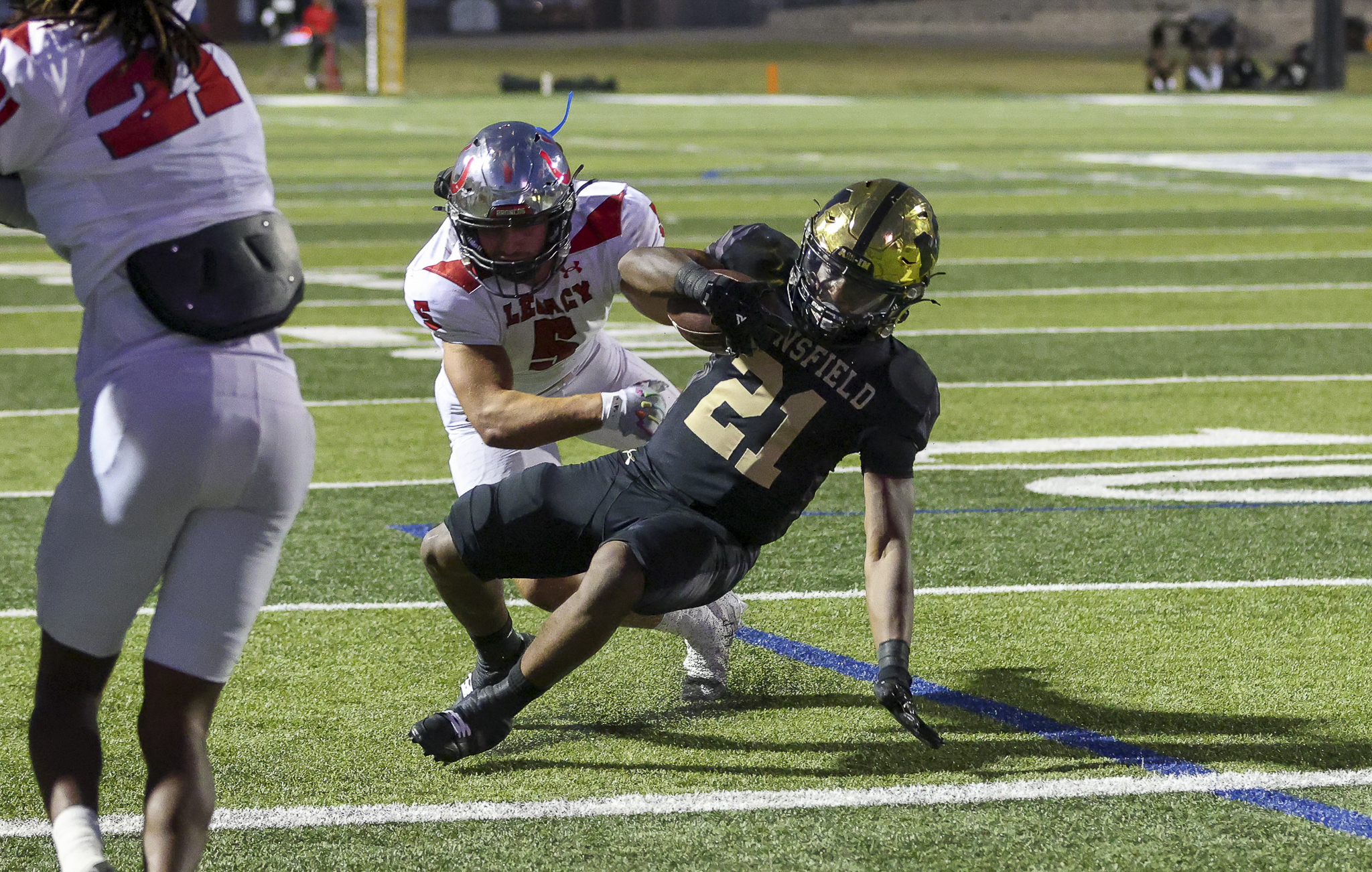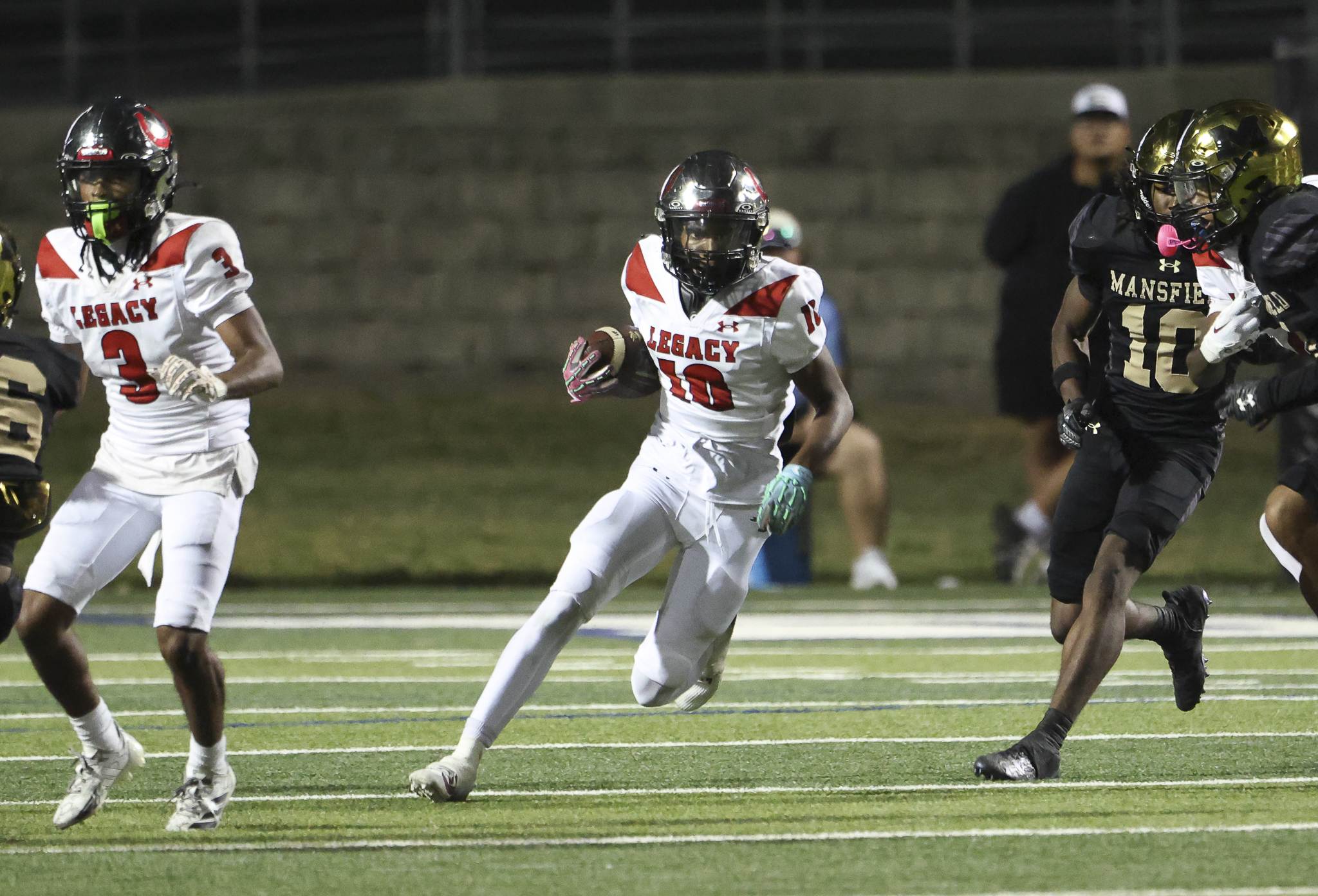 The Legacy defense held, forcing a three-and-out to set up a drive that started on its own 27-yard line. The Broncos moved into Mansfield territory, boosted by a 19-yard pass-and-catch from Jenkins to Kingston James, and a 27-yard rush by Harrison. But McKinney’s interception and return ended that drive.