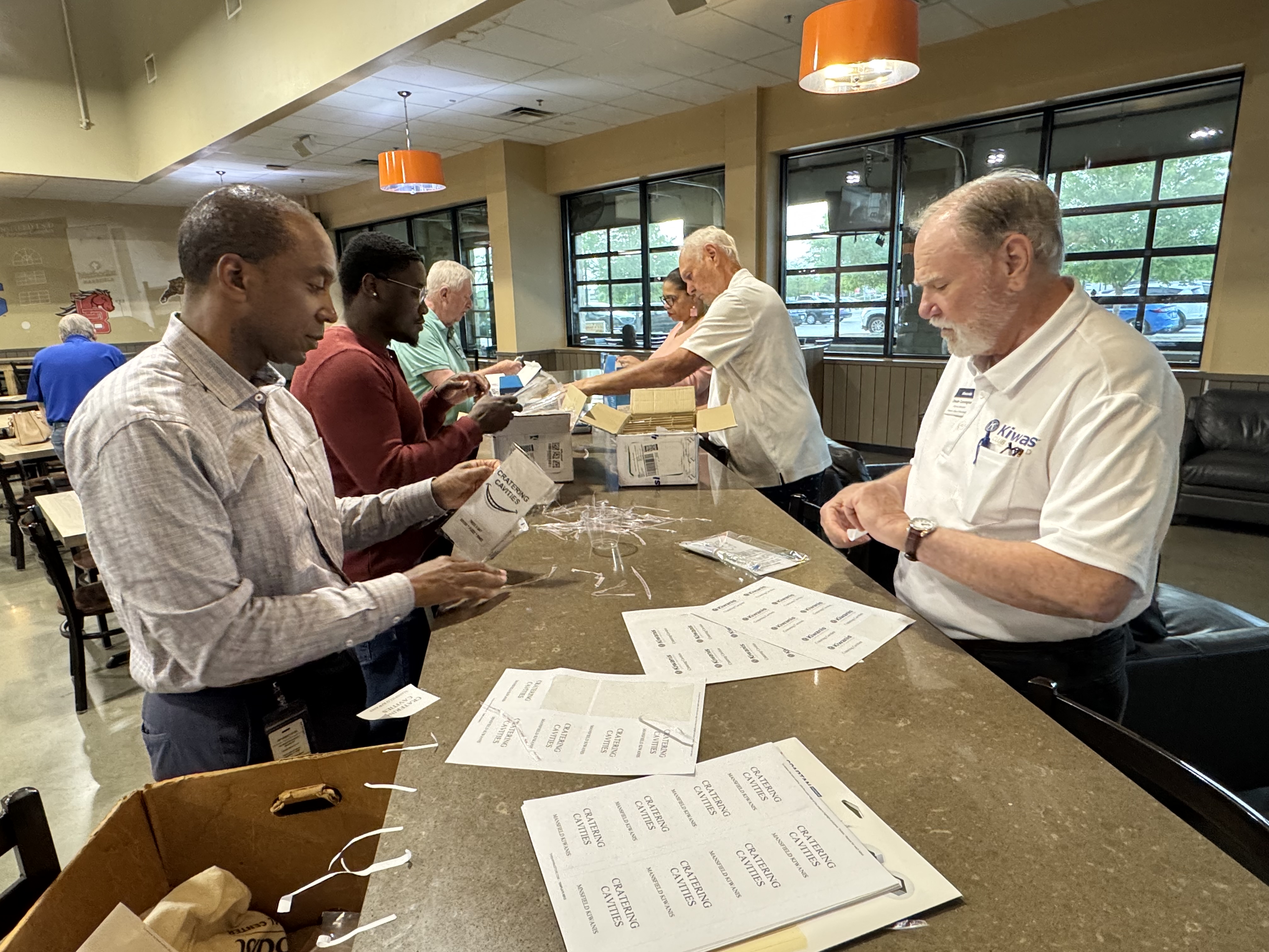 The Kiwanis Club of Mansfield assembled 450 dental kits for students in the Mansfield ISD at Market Street on Friday.